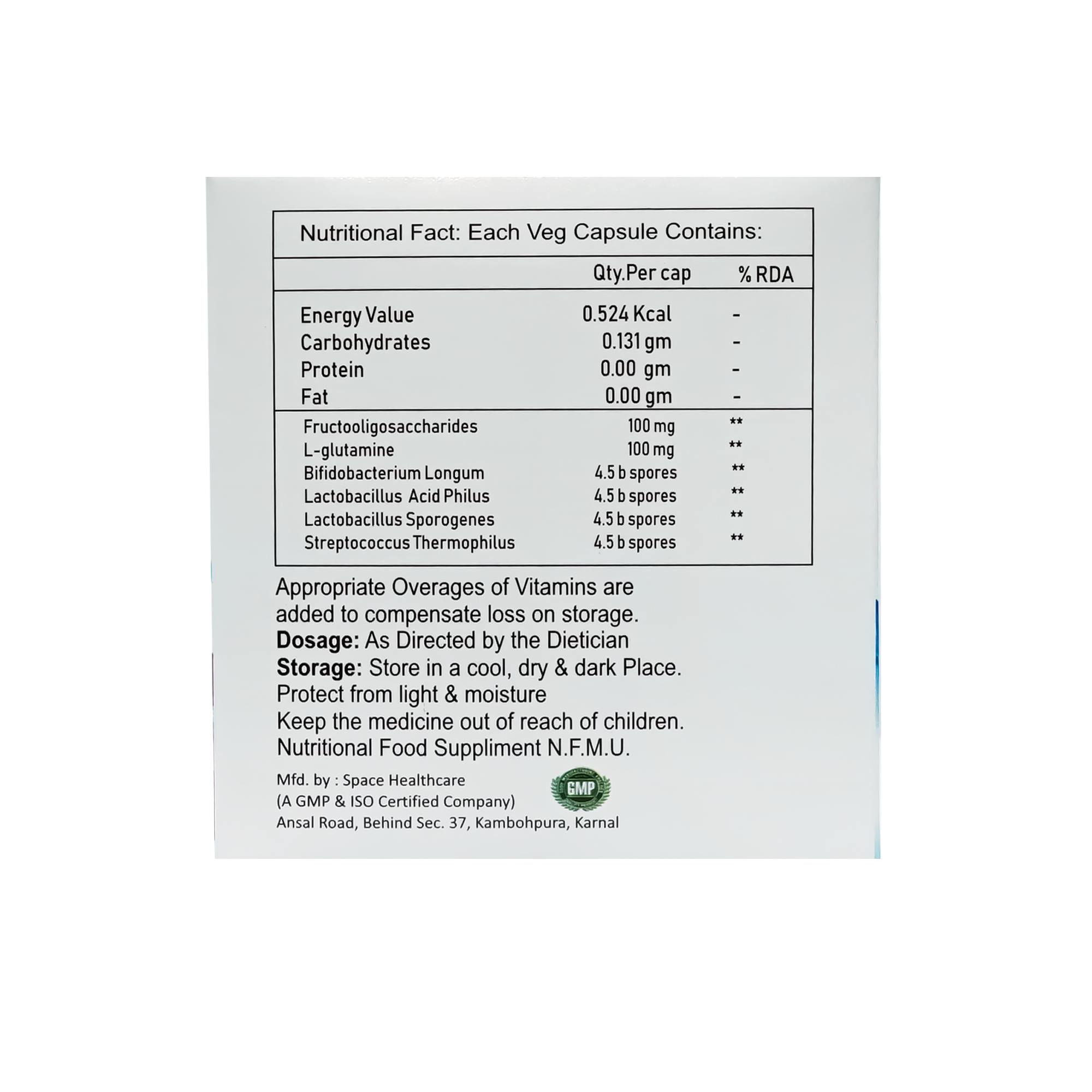 Bifidobacterium bifidum,Bifidobacterium longum,Fructooligosaccharides,L Glutamic acid,Lactobacillus acidophilus,Streptococcus thermophilus